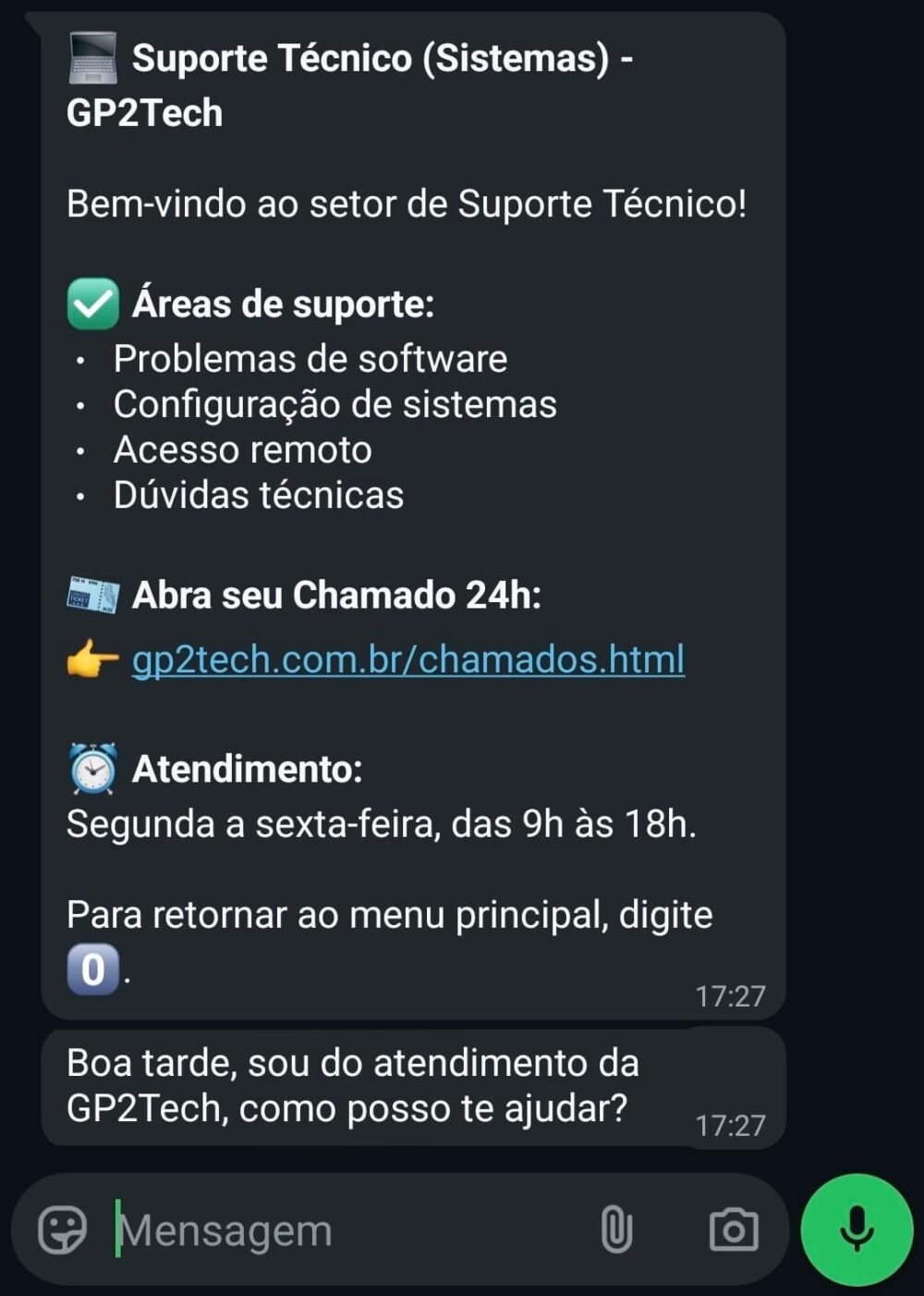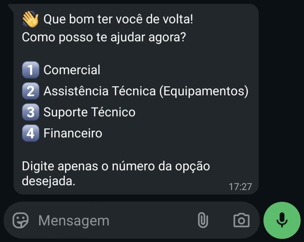 ✅ Fluxos automatizados com menus inteligentes